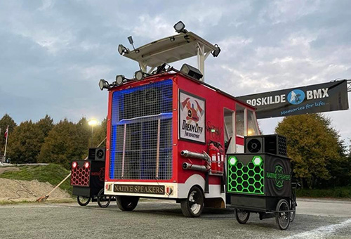 Hvis festen skal være flytbar, så er det en rigtig god ide med lydcykler, enten sammen med Brandbilen som vi har været til Ålborg karneval med eller en trailer fyldt med højtalere, som vi f.eks har kørt med til Pride optoget i København, eller også bare alene til mindre arrangementer.